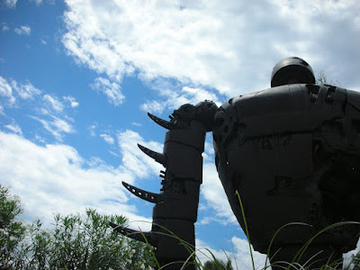 臨走時門口的工作人員用樹枝在地上排龍貓的臉,